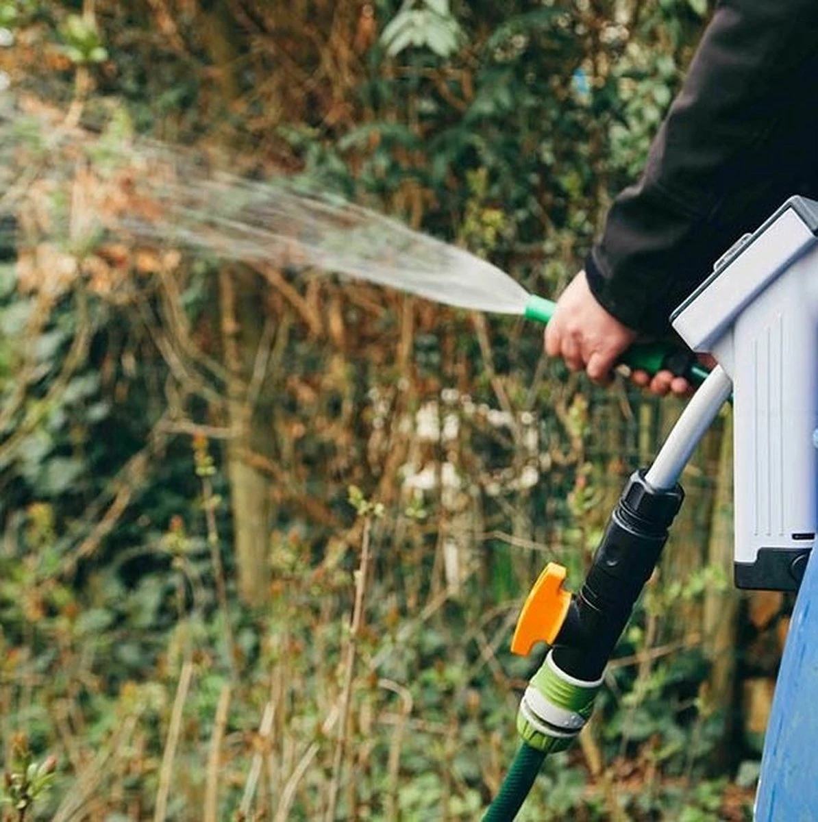 - Eenvoudige aansluiting op de tuinslang; geen zware gieters meer tillen