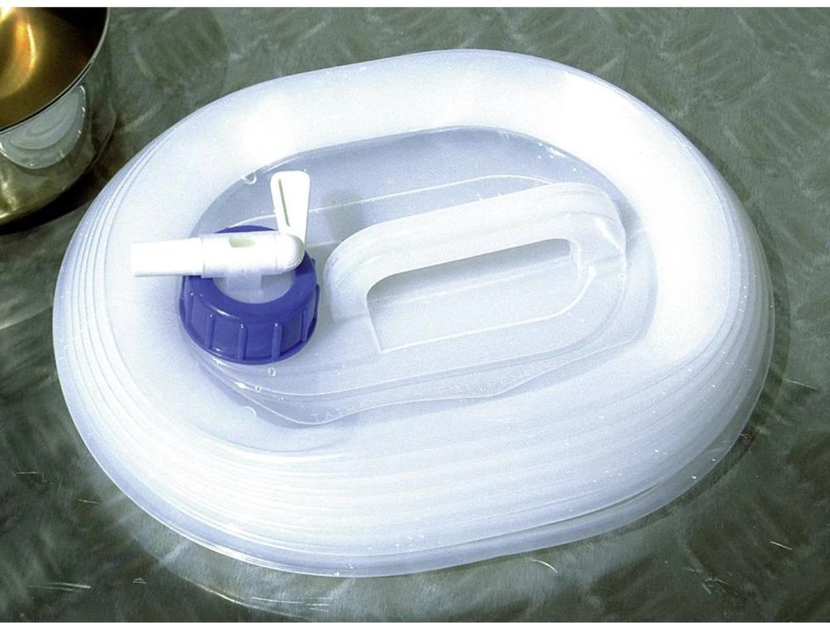 Een sterke harmonica jerrycan. Zeer plat opvouwbaar en daardoor makkelijk mee te nemen. Bovenop bevindt zich een handig kraantje over de vulopening en de jerrycan heeft een stevig handvat.