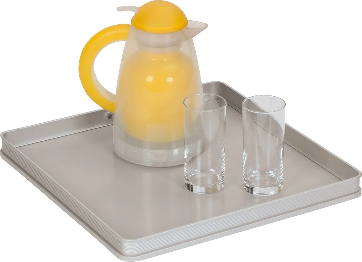 Een prakitsch oplegblad. Gemaakt van MDF met een stevige aluminium rand. Dit oplegblad maakt van een krukje een handig bijzettafeltje. Omgedraaid is dit oplegblad ook te gebruiken als dienblad.