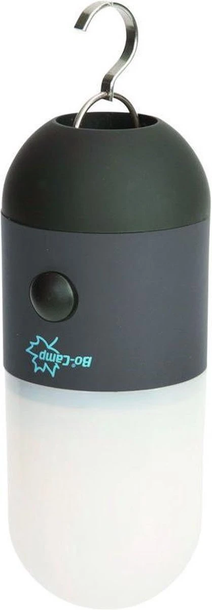 Een stijlvolle, zeer compacte en multifunctionele lamp. Verzorgt prettig licht door high power LED’s met warme lichtkleur en de wit matte kap. De lamp is te gebruiken in drie lichtstanden: 30%, 60% en 100%. Voorzien van een stroeve rubberised behuizing voor meer grip en een inklapbare ophanghaak. De lamp is daardoor zowel staand als hangend bruikbaar. Werkt op 3x AA batterijen (niet inbegrepen). Brandduur: 65-9 uur. Lichtopbrengst: 13-120 lumen.