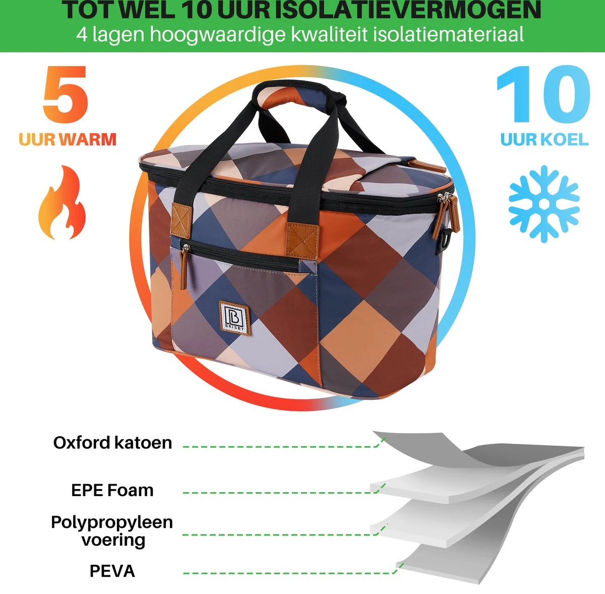 Brisby 4 Laags Geïsoleerde Koeltas – Boodschappentas 21 Liter – Gratis koelelementen – Koelen en warm houden