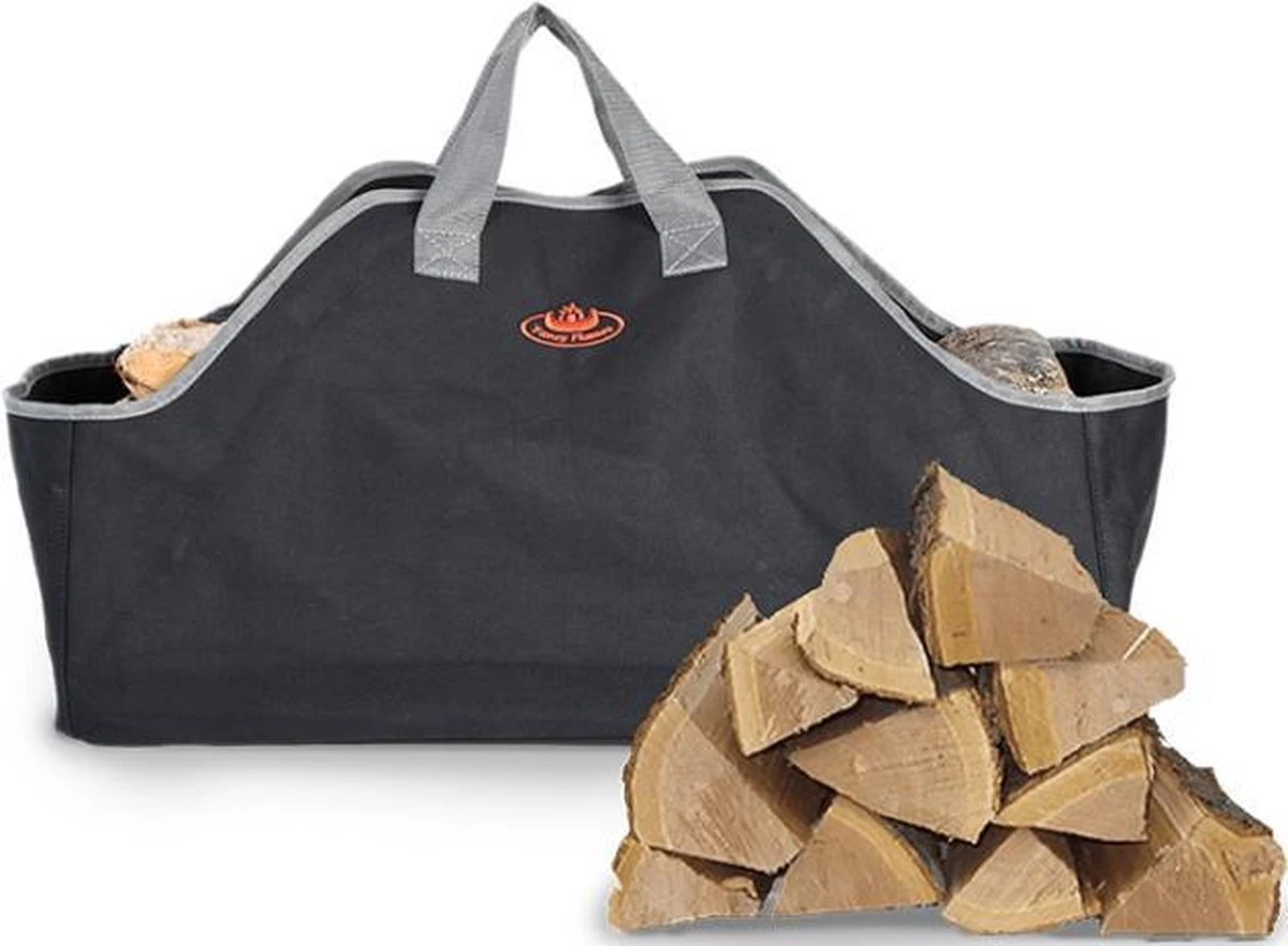 In deze Esschert Design tas kun je niet alleen je haardhout bewaren, maar ook eenvoudig verplaatsen. De tas is namelijk voorzien van een handige draagriem. Uiteraard is deze haardhouttas van extra stevig materiaal vervaardigd en is het gemaakt om zwaar hout te kunnen dragen. De tas gaat dus erg lang mee. Het product heeft een stijlvolle zwarte tint met grijze rand. Op beide zijden is het Fancy Flames logo zichtbaar. De Esschert Design haardhouttas heeft een breedte van 59 centimeter en biedt dan ook voldoende plaats voor een grote hoeveelheid houtblokken.