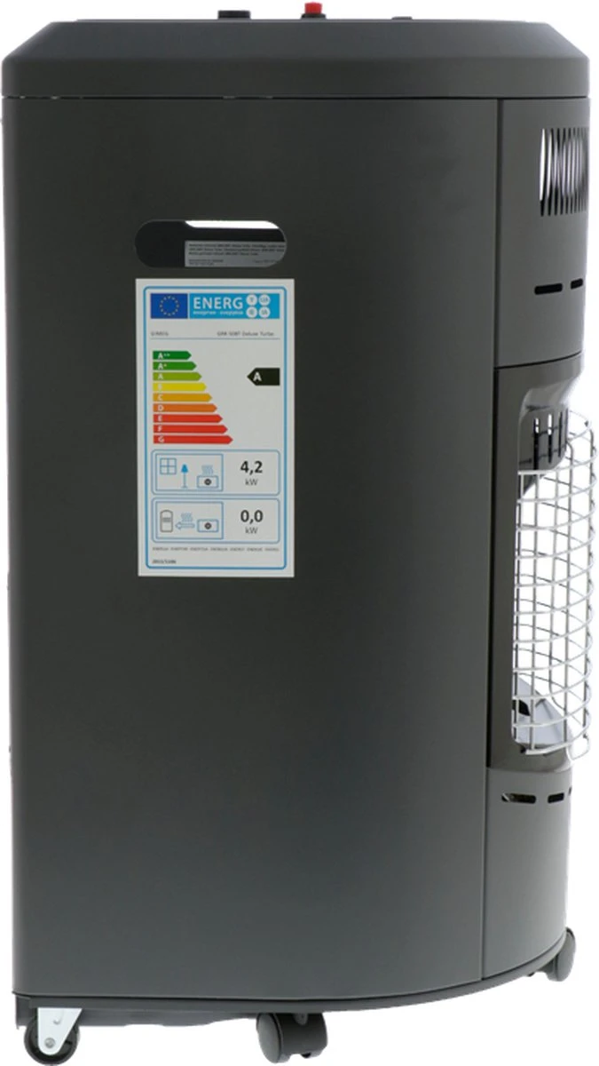 Verwarm jouw zolder of schuur met de Gimeg rolkachel infrarood turbo GRK-100T. De mobiele kachel werkt zowel op gas als op elektriciteit. Sluit je de kachel aan op een gasfles, dan verwarmt hij middels infrarood. De stralingswarmte die het product afgeeft verwarmt niet de ruimte, maar de objecten in het bereik. Je hebt het met een infraroodkachel daarom binnen enkele ogenblikken heerlijk warm. Vergelijk het met warme zonnestralen, zonder Uv-straling! De mobiele gaskachel heeft drie warmtestanden: 1,4 kW, 2,8 kW en 4,2 kW.