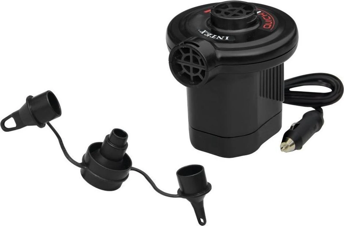 Let op! Deze kan alleen gebruikt worden op een 12 Volt aansluiting in de auto. Handige losse 12 Volt Intex 66626 QuickFill® motorpomp. Deze motorpomp wordt geleverd met een 12 Volt adapter met sigarettenaansteker ingang. Met 3 mondstukken.