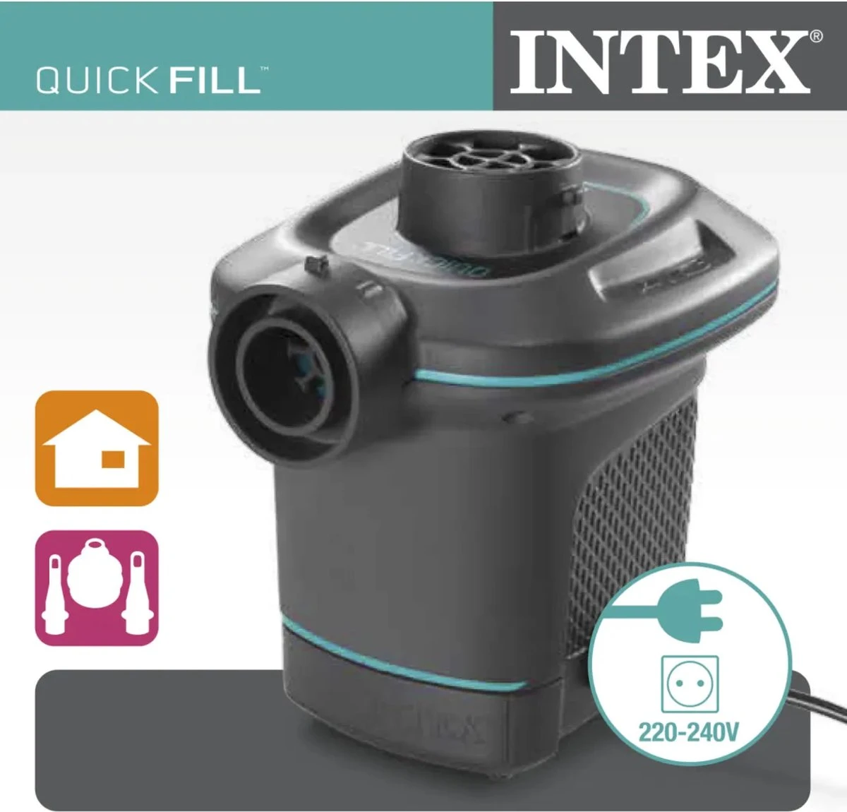 Deze Intex QuickFill® 220V elektrische pomp is vooral erg handig om grote opblaasbare dingen op te pompen, zoals een boot, luchtbed of een mega flamingo.