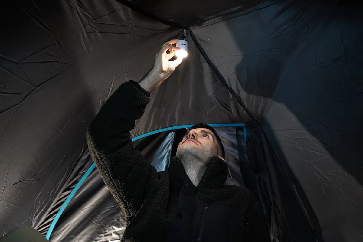 De ingebouwde lantaarn zit aan de onderkant van het pompje. De MINI PUMP kan je gemakkelijk ophangen aan de nok van je tent of aan je tas. De lamp heeft 3 (40 lumen/160 lumen/400 lumen) standen welke je gemakkelijk instelt doormiddel van de grote button in het midden.