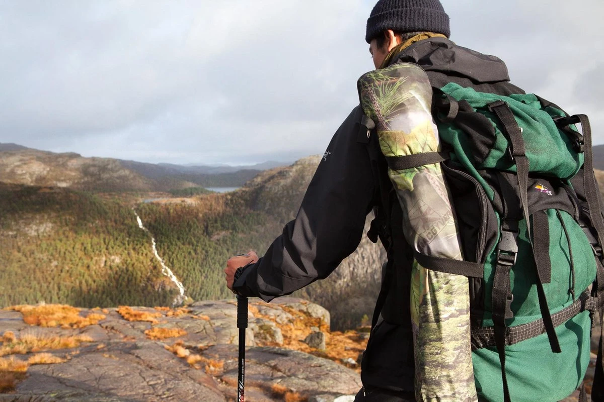 Inclusief telescopische tentstok (tevens wandelstok), touw, scheerlijnen, haringen en transporthoes
