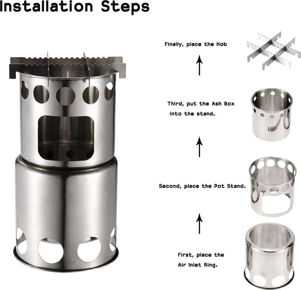 - Opvouwbaar en licht: eenvoudig inklapbaar en compact formaat en verpakt in de draagtas van netstof, voor een praktische opslag. Met slechts 9,4 oz is deze draagbare houtkachel licht en minimaliseert de belasting van je rugzak.