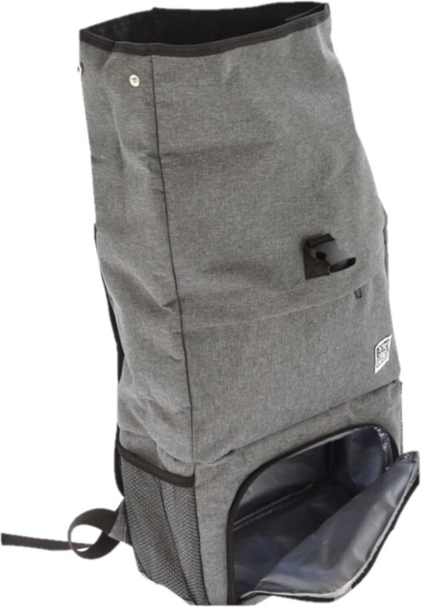 Rugtas/rugzak 30 x 12 x 60 cm 20 liter met klein koelvakje grijs. Handige grijze rugtas met koelvakje, zijvakken en gewatteerde schouderbanden. ALLEEN het voorvakje is geisoleerd om spullen in cool te houden. Afmeting tas: ca. 30 x 12 x 60 cm. Materiaal: polyester.