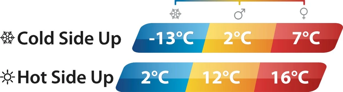 De dubbellaagse vulling houdt je de hele nacht lekker warm. Deze slaapzak heeft een dubbele seizoensfunctie. Hij is omkeerbaar om naar wens de temperatuurklasse aan te passen. Het ingebouwde kussen biedt extra comfort en maakt inpakken gemakkelijker. De capuchon met rits is ideaal voor koud weer. De slaapzak kan volledig uitgevouwen worden tot een dekbed. Je kan zelfs twee slaapzakken aan elkaar ritsen.