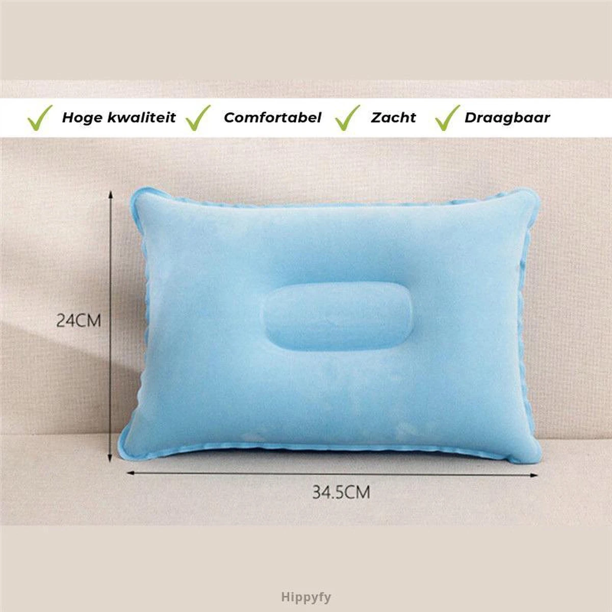 Deze opblaasbare kussen van Hippify is zeer compact, handig en ideaal voor een rustmomentje waarbij je jouw hoofd rustig kunt neerleggen of waar dan ook een dutje kunt doen.