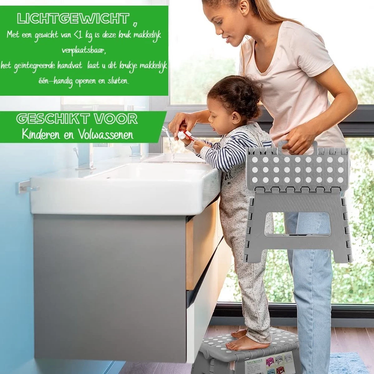 Ben je op zoek naar een compact maar stevig opstapje voor in huis? Met afmetingen van 29 *22 *22 cm “wanneer volledig open, heeft Splendole’s kleine opvouwbare opstapkruk de perfecte maat. Maar laat u niet misleiden door het compacte, draagbare formaat. Dit opstapje is vakkundig vervaardigd met behulp van premium, heavy-duty plastic dat supersterk is en gebouwd om lang mee te gaan. Bovendien is het grote stagebied uitgerust met een uniek gestructureerd oppervlak met grip-dots om ervoor te zorgen dat uw voeten niet wegglijden wanneer u erop staat, waardoor het een veilige keuze is voor kinderen en volwassenen van alle leeftijden. Kan met gemak ladingen tot 150 kg dragen, zult u zich niet wiebelig of onveilig voelen wanneer u het gebruikt.