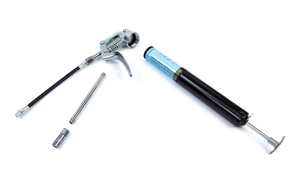 | Verpakkingsinhoud | 1 x Starre smeerbuis 15 cm. 1 x Starre smeerbuis 12,5 cm. 1 x Flexibele smeerslang 20 cm 1 x Aansluitkoppeling. 1 x Vetpatroon ( 35 x 150 mm. ) |